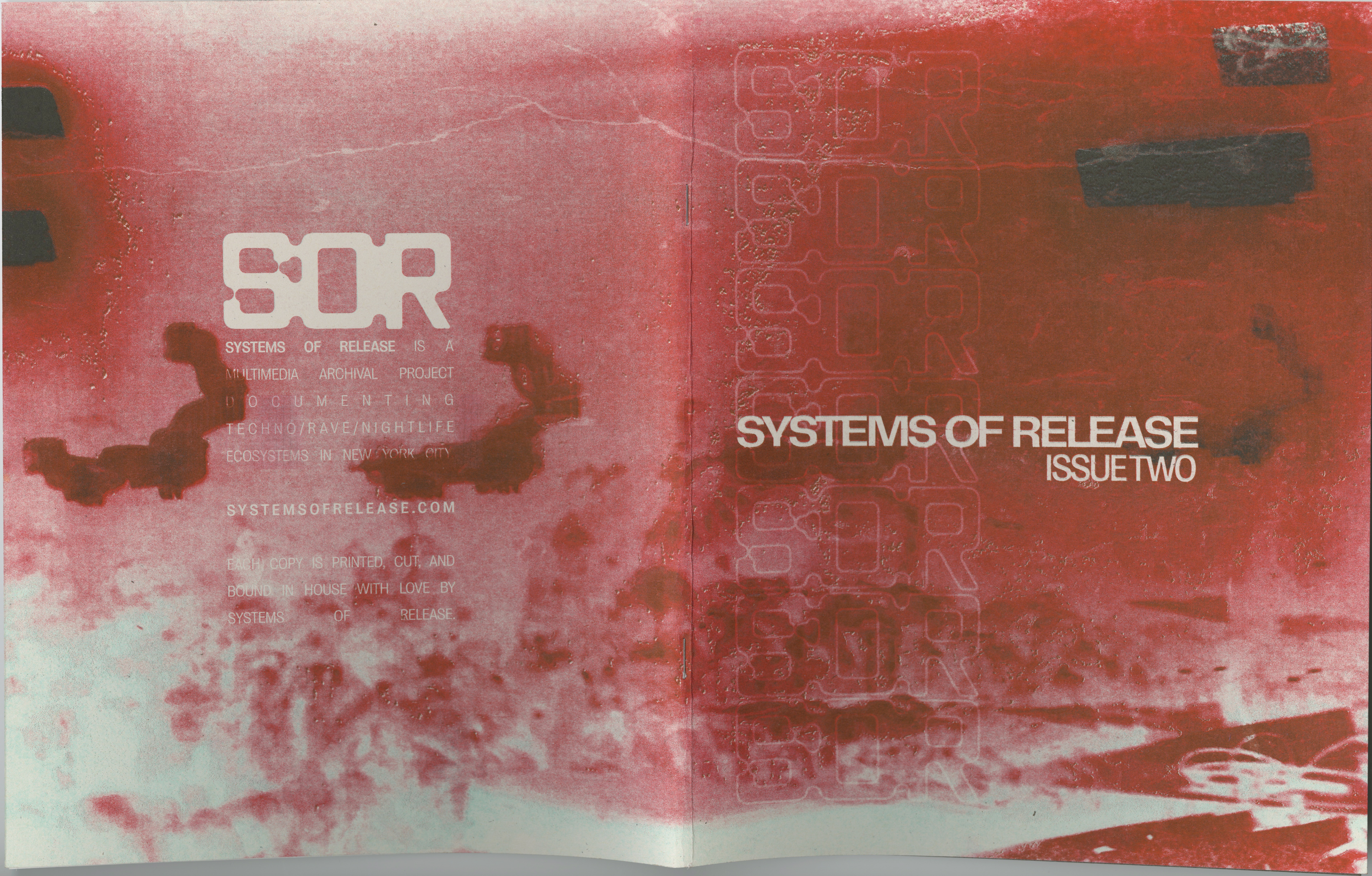 The first issue of Systems of Release Magazine features interviews, writings, photos, music from NYC's electronic underground. Each copy is printed, cut, and hand bound. We sincerely thank you for supporting this effort to archive, record, and celebrate the electronic music scene in NYC.